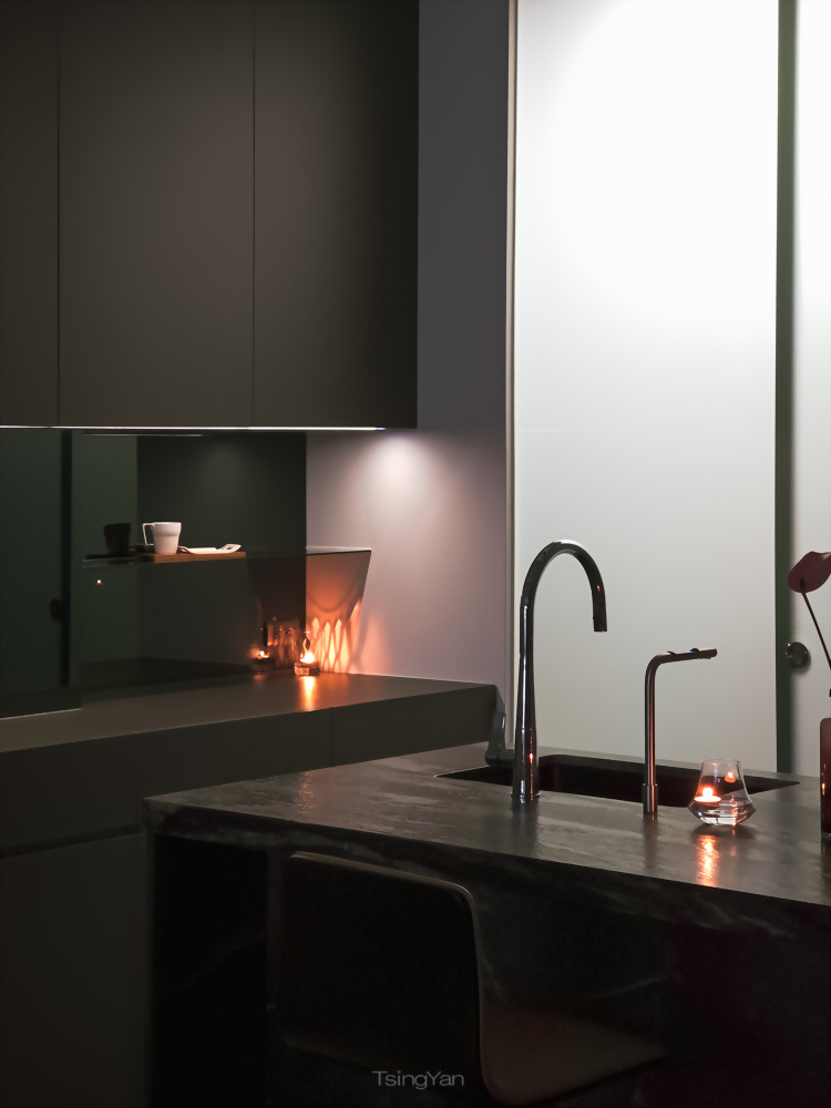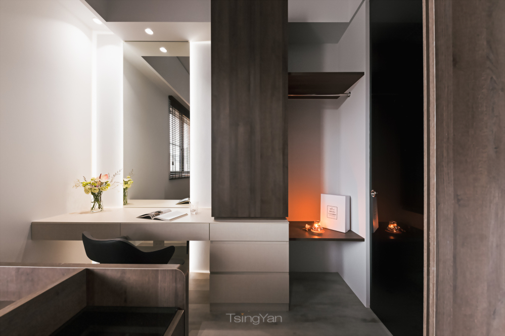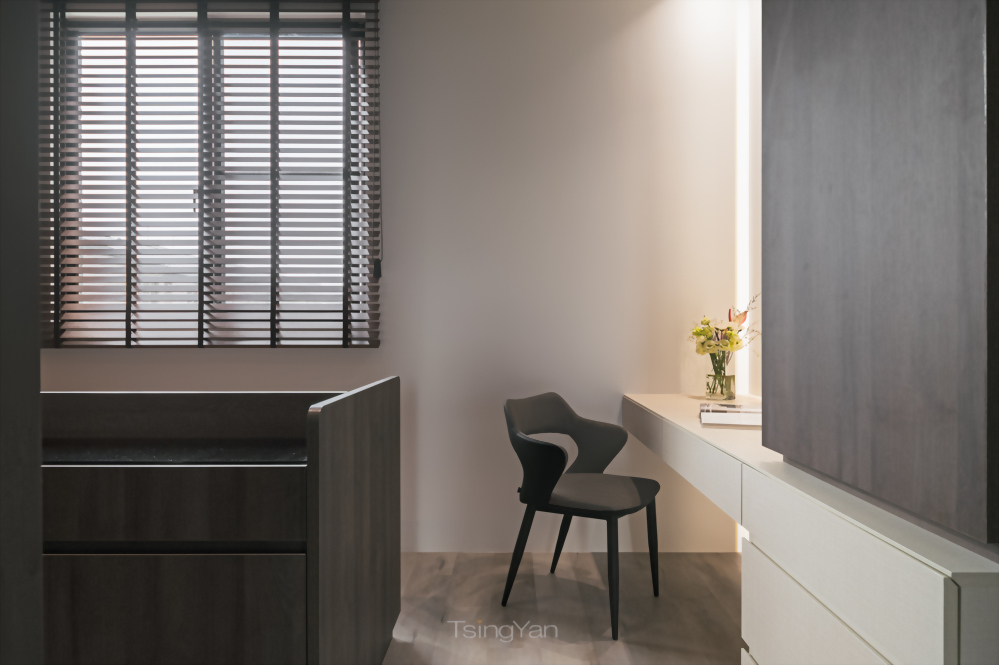 其中隱藏著大量的收納設計, 也帶出一絲屬於現代都市人的乾淨俐落。