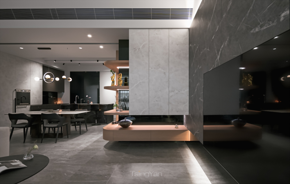 石材與金屬的相互兼容, 表現空間氣度與精緻品味, 且不著痕跡地融入日常。
